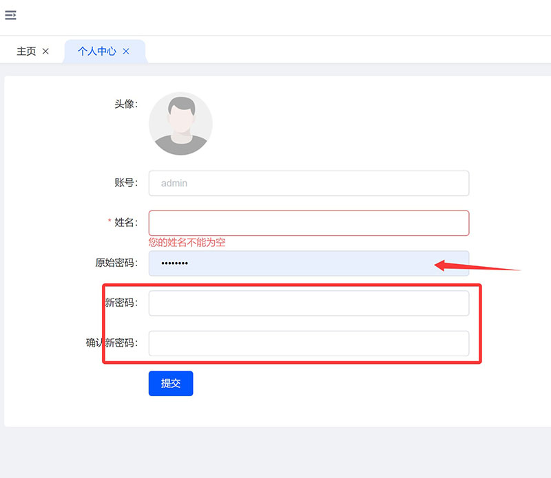第二步,必须输入原始密码后再输入新密码,且需要确认新密码后提交保存即可