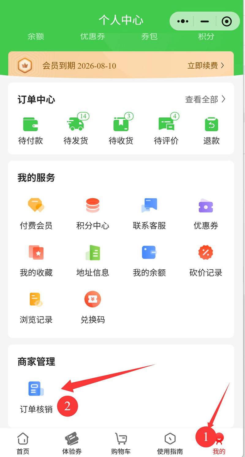如下图,商户首先要注册会员;然后由管理员把会员登记为核销员,设置允许核销的商品,确认后,商户核销员就创建成功了,如何查看是否是核销员,只需进入小程序,我的,看是否有商家管理和订单核销的按钮。有就是核销员!