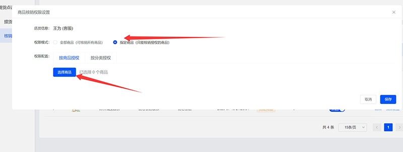 添加核销员后一定要注意,默认的是可以核销全部商品,所以要在权限设置中设置指定商品的核销;