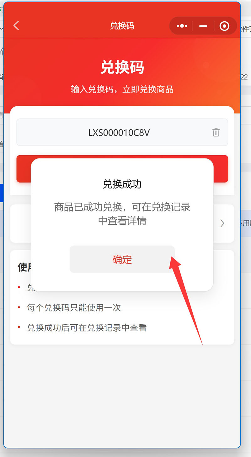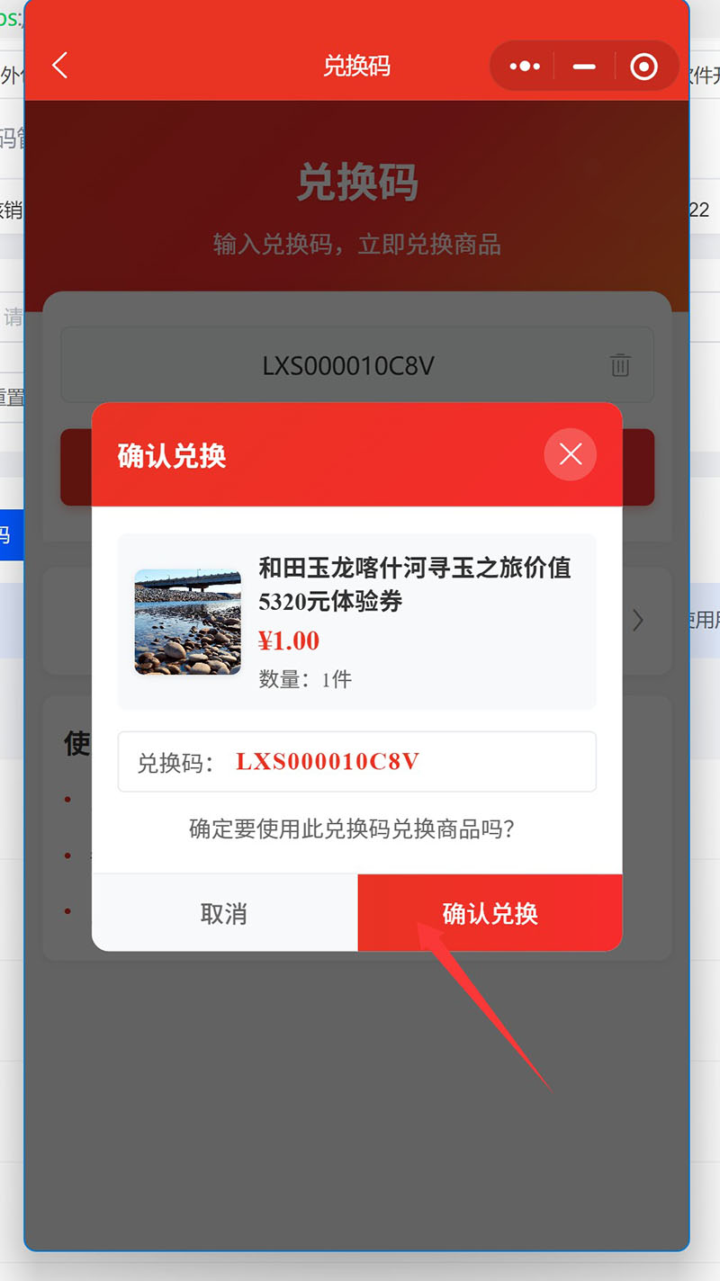 出现和兑换码匹配商品,并确认兑换