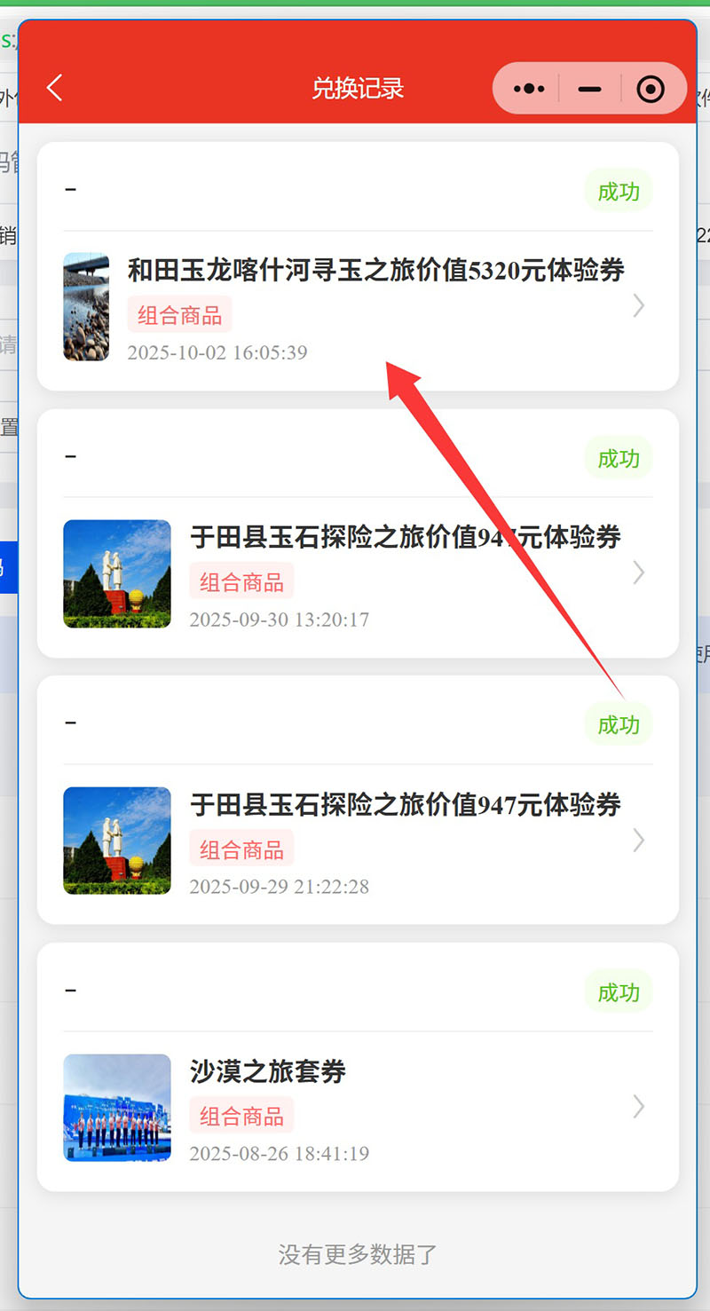 如兑换记录中会出现最新兑换的商品