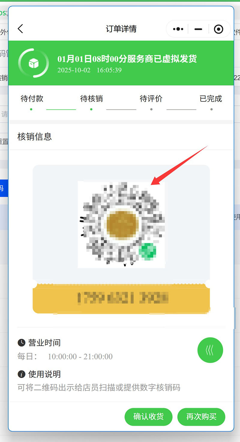 直接点击商品可以得到如下页面,其他流程就和核销流程一样了